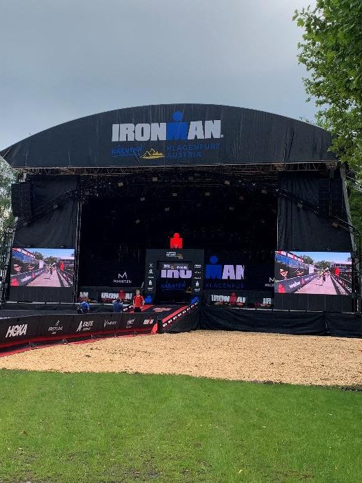 Jetzt „nur“ noch laufen. Bike einhängen, kurzer Toilettenstop, nochmal eincremen und ab in die Laufschuhe. Geplante Pace 5:40 pro KM. Sofort merke ich die Hitze. Es knallt so richtig vom Himmel. Puls und Pace passen die ersten 4km, dann entscheide ich mich für „langsamer“ laufen bzw. fürs gesund ankommen. Wenn ich so weiterlaufe, „killt“ es mich und ich sehe das Ziel nicht. Also neuer Plan… Lauf von Verpflegungsstelle zu Verpflegungsstelle, gehen – kühlen – trinken. Leider fängt jetzt auch der Magen an zu murren (frühes Frühstück – später Schimmstart – nicht optimale Verpflegung auf dem Rad). Also Cola rein… wird schon gehen. Ab jetzt wird es eine Quälerei. Teufelchen links (komm… nur kurz gehen hier im Schatten… andere machen es doch auch – und das waren echt viele) und Engelrechen rechts (immer weiter, immer weiter… die nächste Verpflegungsstelle kommt gleich) kämpfen um die Herrschaft. Die Laufstrecke ist eine liegende Acht, die man zweimal läuft. „Leider“ kommt man dabei 4x am Ziel vorbei und hört „You Are An Ironman“ bevor man selbst reinlaufen darf. Und immer schön weiter in der Sonne. Großartige Helfer auf der Strecke mit Wasser, Eis, Duschen usw... Immer kühlen, Cola und wieder anlaufen. Der Lauf war von KM 4 bis KM 32 eine innere mentale Schlacht. Ab KM 32 hat es dann „fast“ Spass gemacht. Denn ich wusste… jetzt komme ich durch (vorher hatte ich echt Zweifel, ob ich das heute packe). Also Partymodus an und mit jedem an der Strecke abgeklatscht usw... Zwei KM vor dem Ziel dann Gänsehaut und Emotion pur. Man hört (und sieht) das Ziel… geil. Roter Teppich, Stadion Atmosphäre und rauf auf die Bühne durchs Zieltor… "Axel... You Are An Ironman". MEGA GEiL! Zeit… vollkommen egal… Lauf eine Stunde länger als geplant… vollkommen egal. Durchgezogen, nur in den Verpflegungsstellen gegangen… mega happy und super zufrieden mit mir und der Welt (nebenbei ein kleines Tränchen verdrückt so happy war ich).