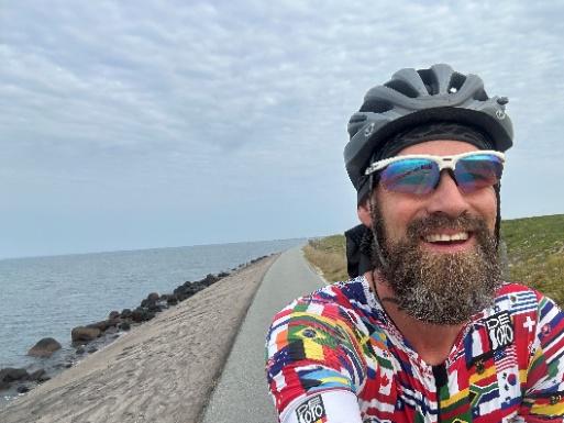 Sonntag, 17.08.2025 05.00h aufstehen… ohne Wecker um 4:55h aufgewacht. Immerhin fast sieben Stunden Schlaf. Frühstück auf dem Zimmer mit Brot, Butter Honig und zwei Tassen Kaffee. Aufgrund meiner geplanten Schwimmzeit von 1h 15min, war meine Startzeit für 7:30h geplant. D.h. gemütlich 05:45h zur Metro und dann ab zu T1. Rad aufpumpen, Getränke und Verpflegung verstauen, Wechselbeutel checken… das übliche Vorstartprozedere. Irgendwie war ich gechillt und hatte zu keiner Zeit Stress. Gegen 07.15h Neoprenanzug anziehen, in meine Startbox einsortieren und um 7:25h ging die Reise für mich los. Das Schwimmen in der Ostsee (am Amager Strand) ist großartig. Auch die Orientierung ist sehr einfach… 400m geradeaus, an der Boje rechts und dann unter zwei Brücken insgesamt 1300m gerade aus. Dann zweimal links, 1600m geradeaus zurück und nach der letzten Brücke wieder zweimal links und zurück zum Ausstieg. Ich hatte, während dem gesamten Schwimmen immer sehr gute Beine, denen ich Folgen konnte. Nach 1h 15min. war das Schwimmen Geschichte. Raus aus dem Neo und im gemütlichen Trab 500m zum Rad. Durch die niedrige Startnummer war ich direkt am Bikeaufstieg und musste nicht lange mit dem Rad schieben.